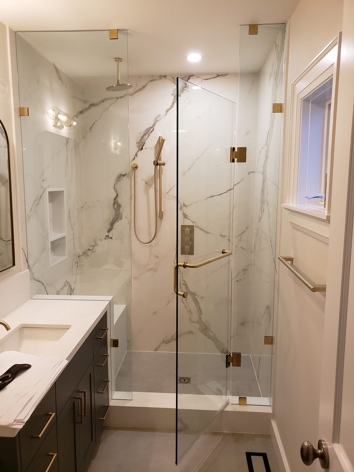 Have your ideal bathroom aesthetic come to fruition with a custom glass shower installation.
