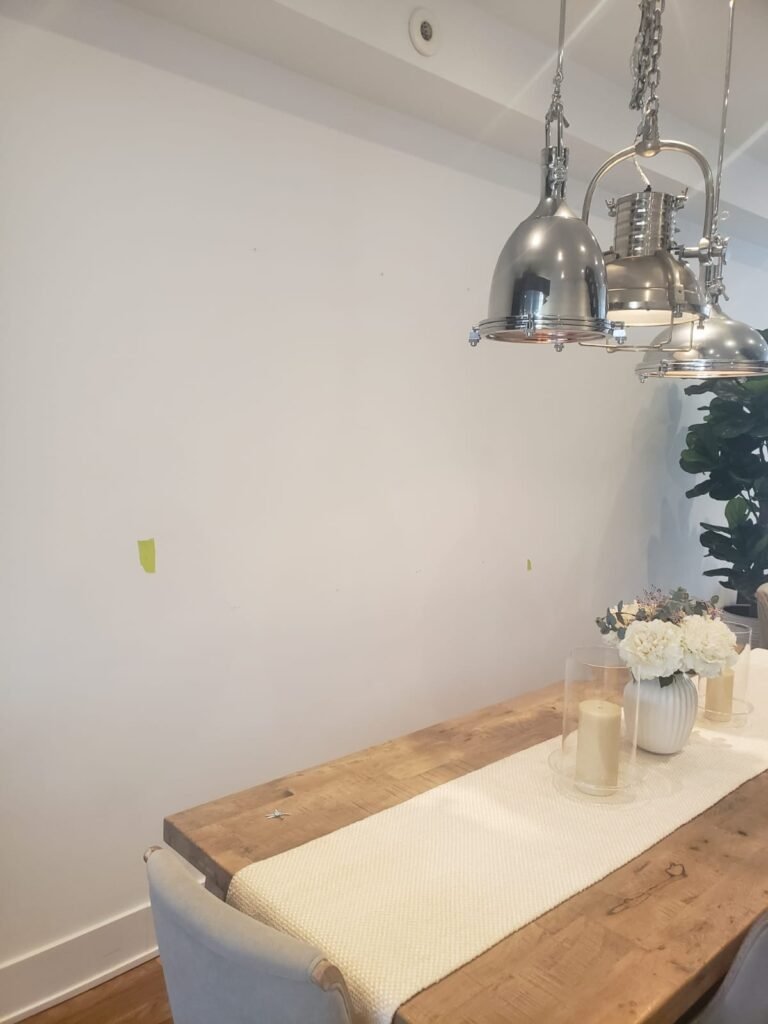 As seen in the image above, the transformation is remarkable! The new large custom wall mirror seamlessly blends into the dining room, reflecting the elegant lighting and modern staircase. The result?